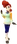 In Ape Escape: Pumped & Primed, he is seen wearing the same outfit but with slightly more detailing and a black long sleeved shirt underneath and a blue visor with black flames, gray and white shoes and plain white socks. This look was also used in the anime, minus the hat.
